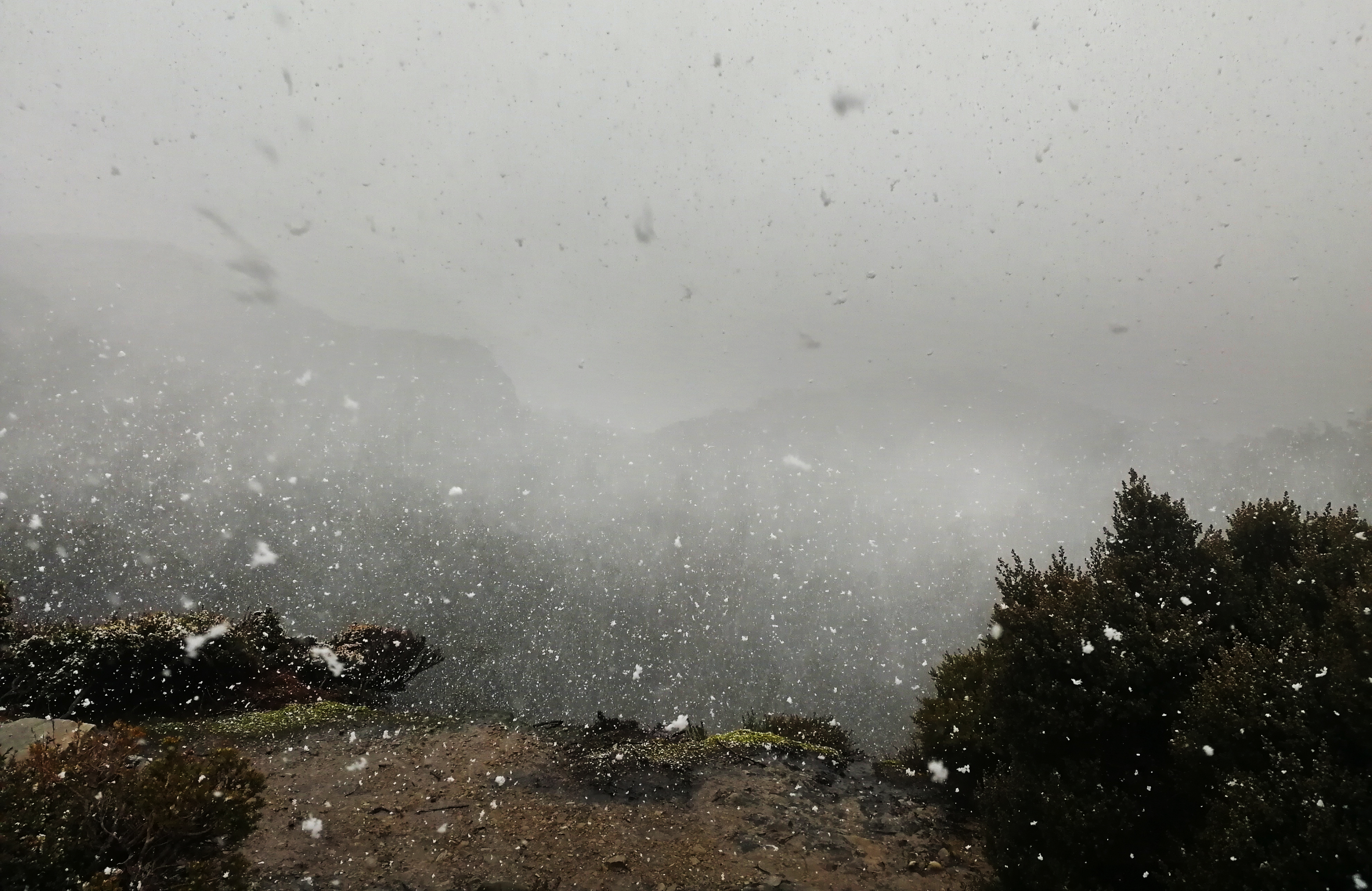 Dark clouds appear on the horizon. In just a few moments, they descend and I am in blizzard. My radius of vision is limited to my fingertips and suddenly it’s only me and a tense fog. The hail is coming directly against me. I feel the power of nature like needle prints in my face. Very carefully, step by step I make my way along the gnarled, muddy, often stony path, which is in sections, by name, not a path anymore.